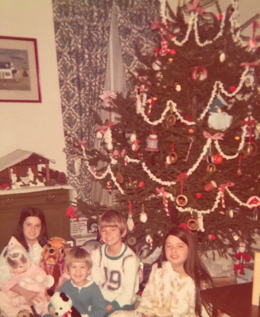 On Christmas Eve we went to church to celebrate the birth of Jesus. When we got home, we’d help my dad set up the luminaries along our sidewalk and down the driveway lighting the way for Christmas. My mom always made a beautiful spread of appetizers that we nibbled on as we exchanged gifts among family members. We’d end the evening with my dad reading “Twas the Night Before Christmas” a tradition that still takes place today.