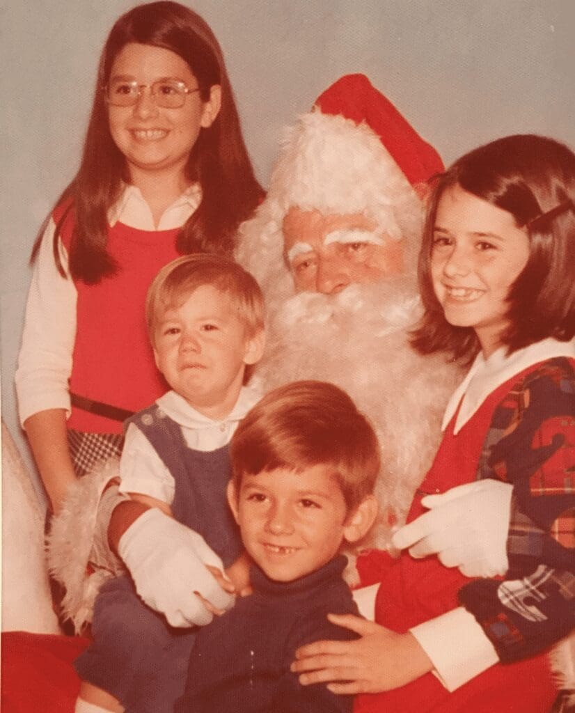 Growing up, our family visited Santa every year at the shopping mall. One year we even caught Santa (aka Mr. Ortolano) delivering a bike! How about his mustache and beard made from cotton balls?! Pretty creative, don’t you think?