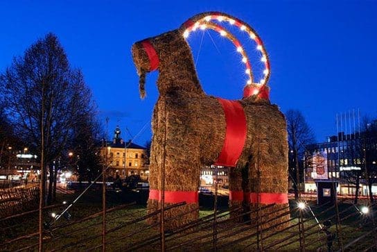 In 1966, the town of Gävle began a tradition of building a larger-than-life straw goat in the town square that measures more than 42 feet high, 23 feet wide, and weighs 3.6 tons. The structure is meant to last from Advent until New Year’s Day.