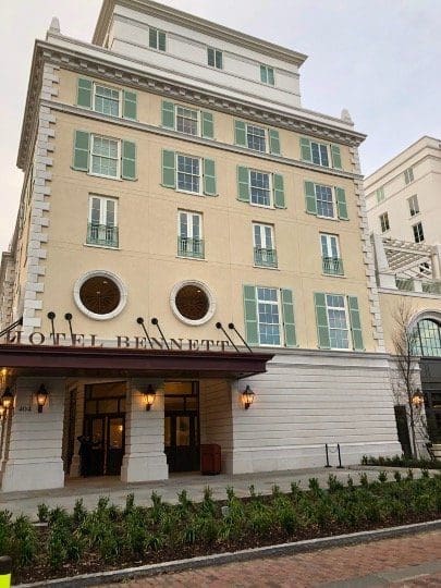 While Hotel Bennett feels elegant and grand, it’s also comfortable and welcoming. Each room has charming but contemporary furnishings. The bathroom has a beautiful standalone tub. The colors in the rooms are so calming and elegant.