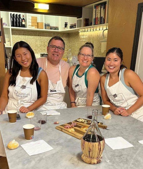 Dario’s family also owns Tenuta Cavasecca, an organic olive oil farm. He taught us the process of how the oil is made from planting the olives to harvesting by hand, to transporting them to the mill so they can be washed, smashed, pressed, mixed and bottled into award winning olive oil. What a fun night of taste testing fresh olive oil and a homemade Sicilian meal! Delicious!